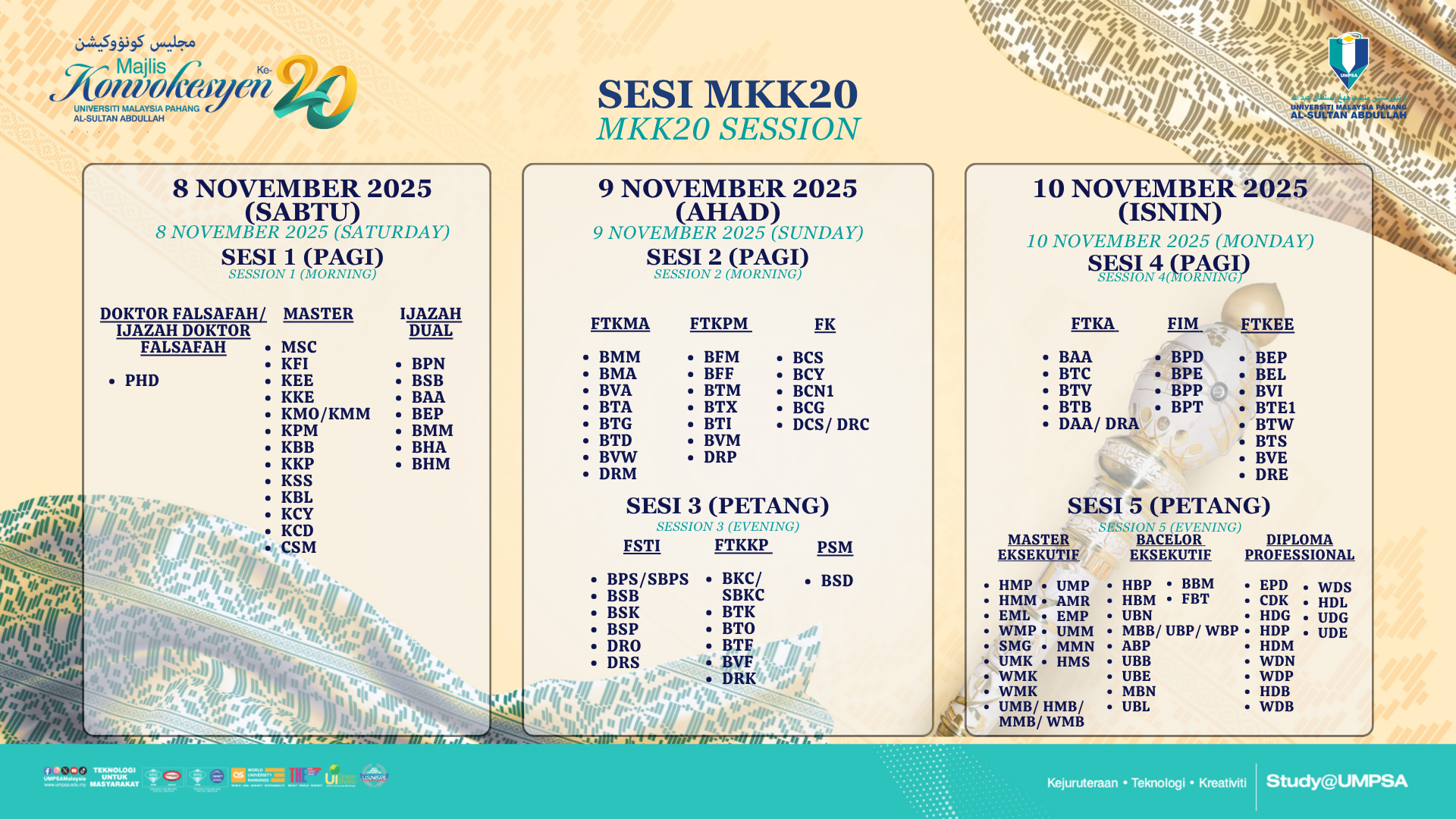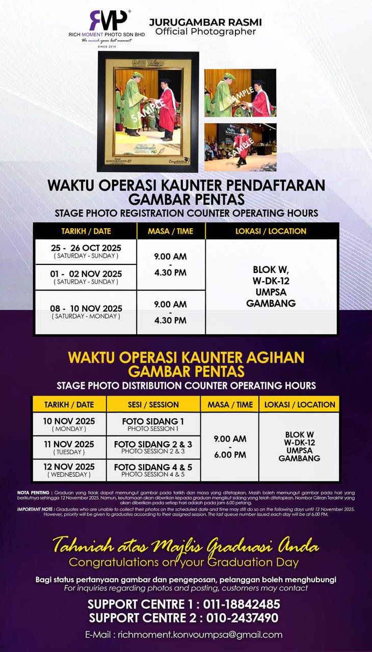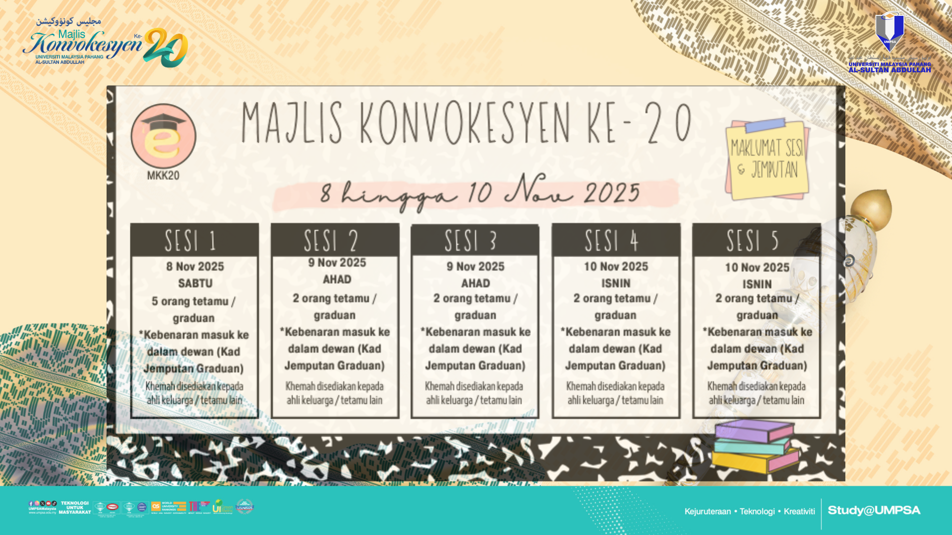 - Majlis Konvokesyen sesi petang bermula jam 2.00 petang - 5.30 petang.