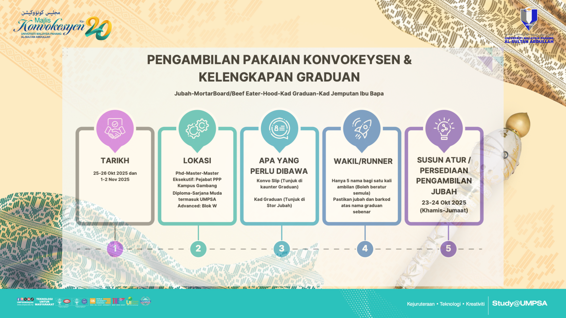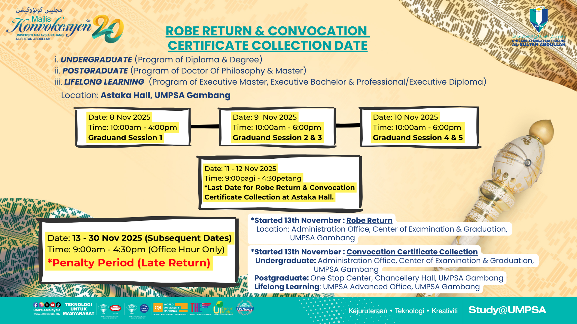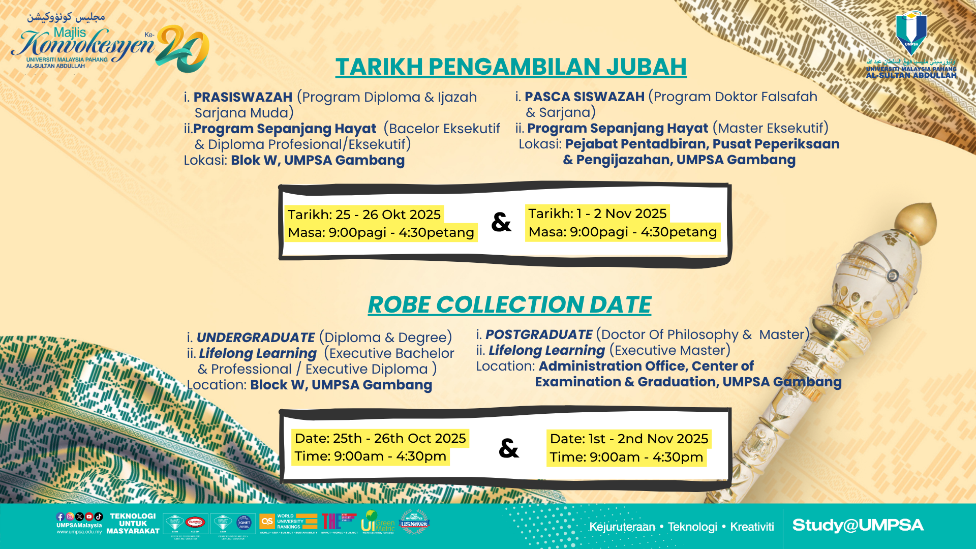 - Majlis Konvokesyen sesi petang bermula jam 2.00 petang - 5.30 petang.