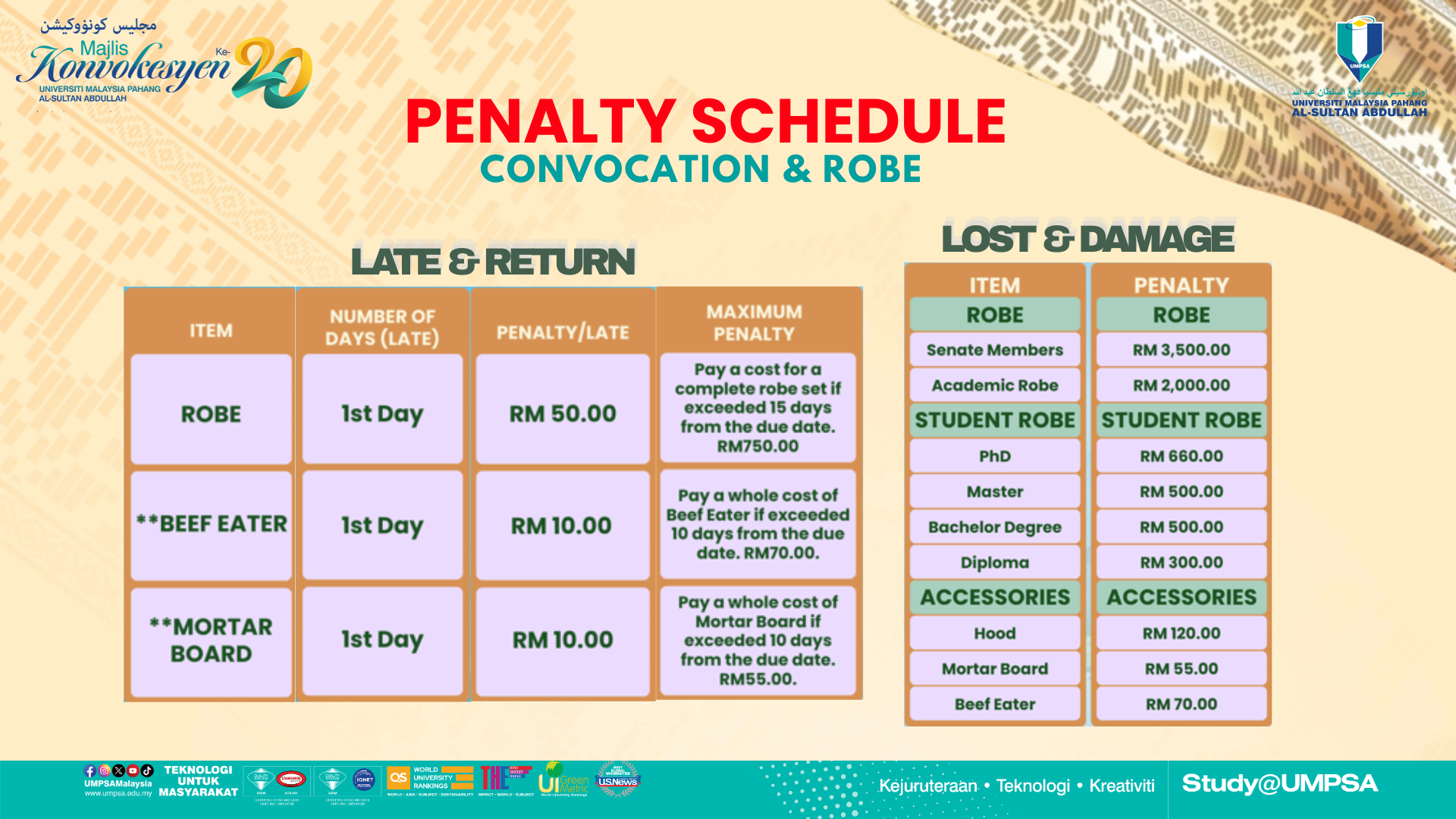 - Majlis Konvokesyen sesi petang bermula jam 2.00 petang - 5.30 petang.